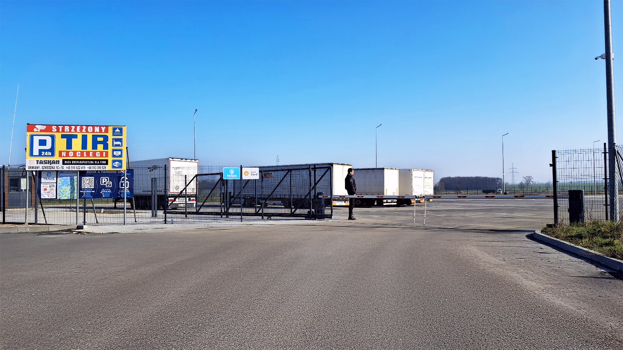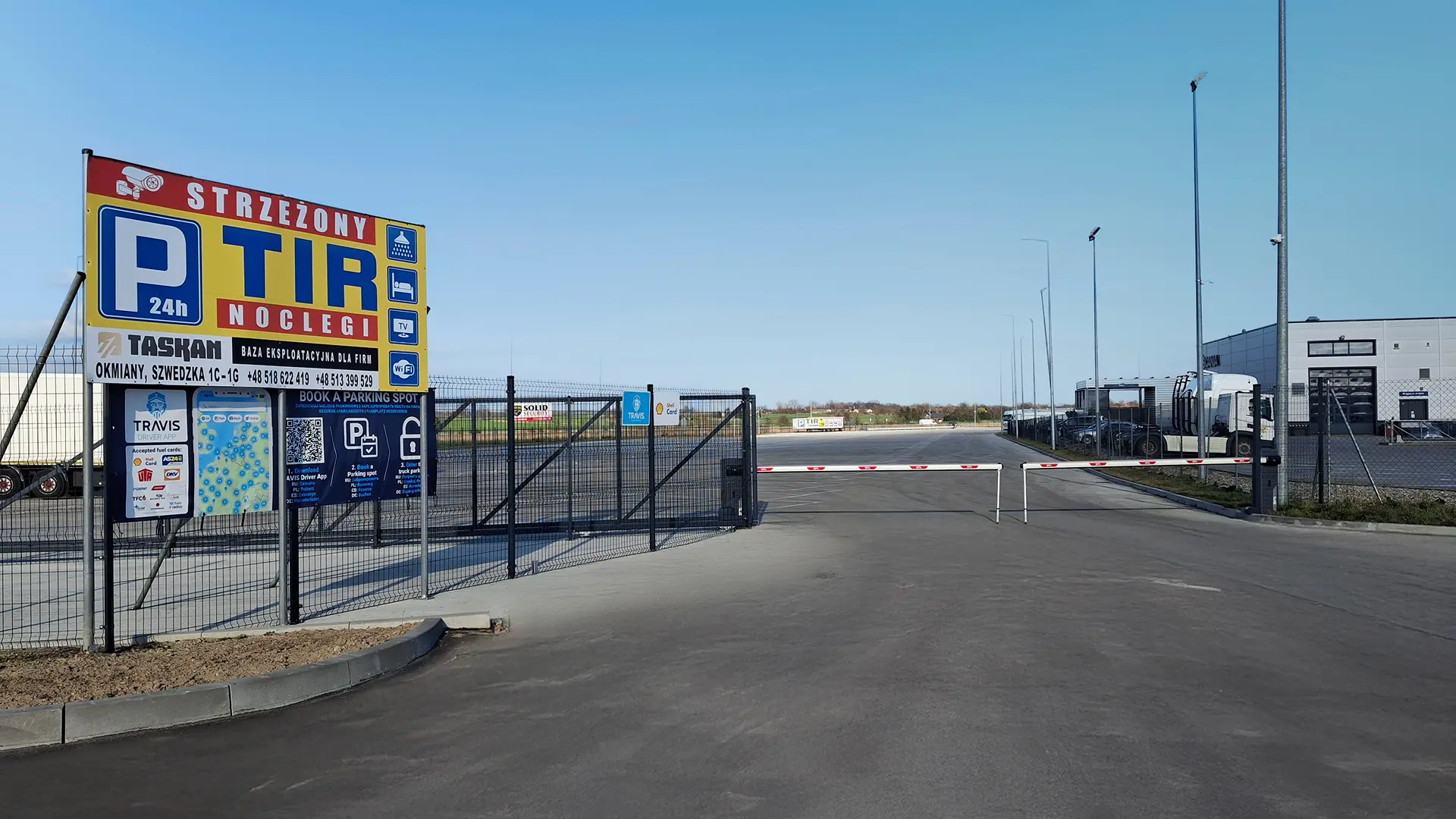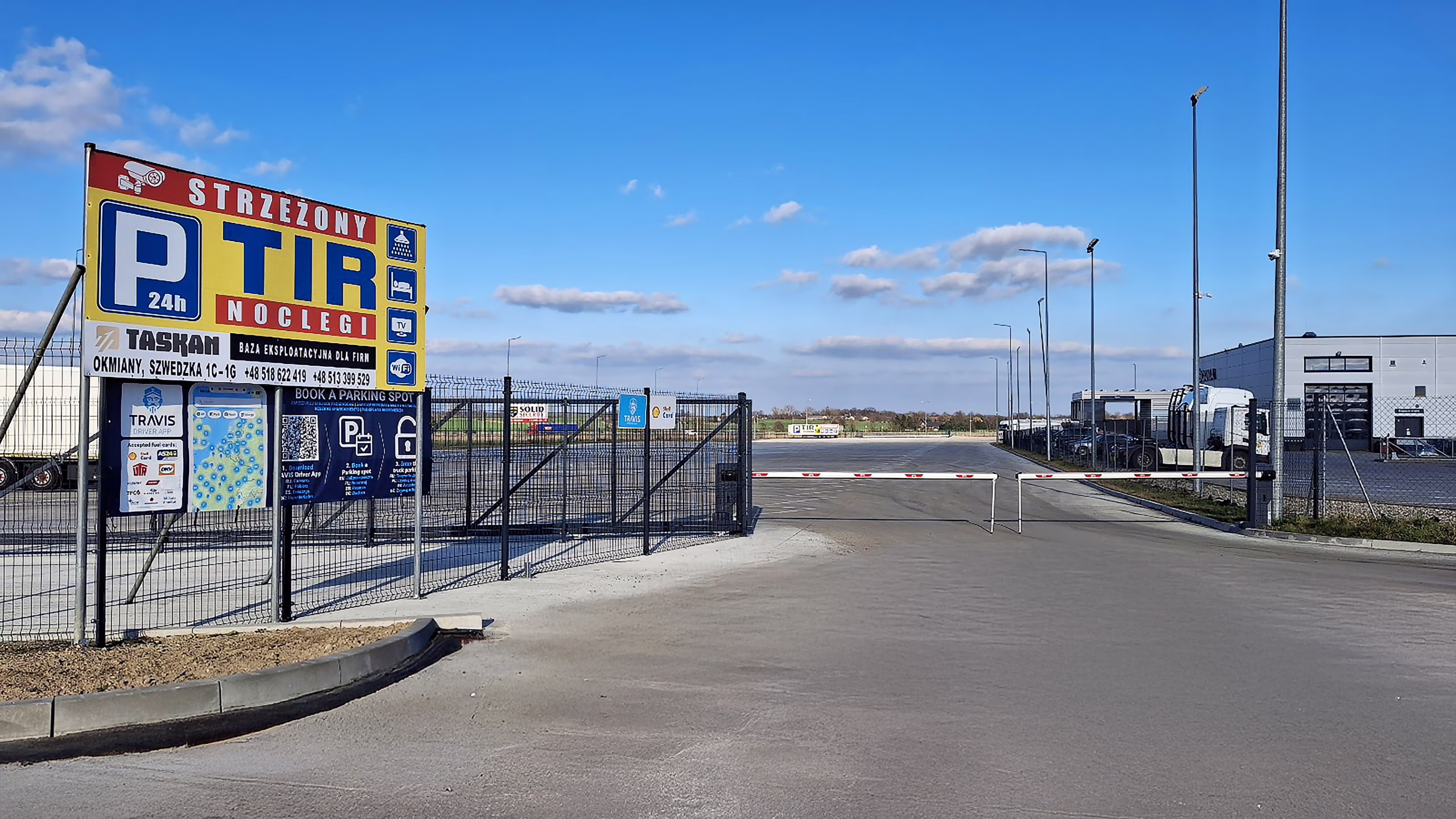 Parking Taskan dla TIR to teren ogrodzony, monitorowany i strzeżony 24/7, co zapewnia maksymalną ochronę pojazdów oraz przewożonych ładunków. Obiekt wyposażony jest w nowoczesny system kamer oraz profesjonalną licencjonowaną ochronę, dzięki czemu kierowcy mogą odpoczywać bez obaw o swoje ciężarówki.