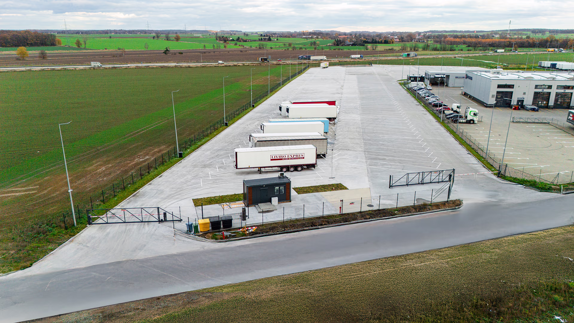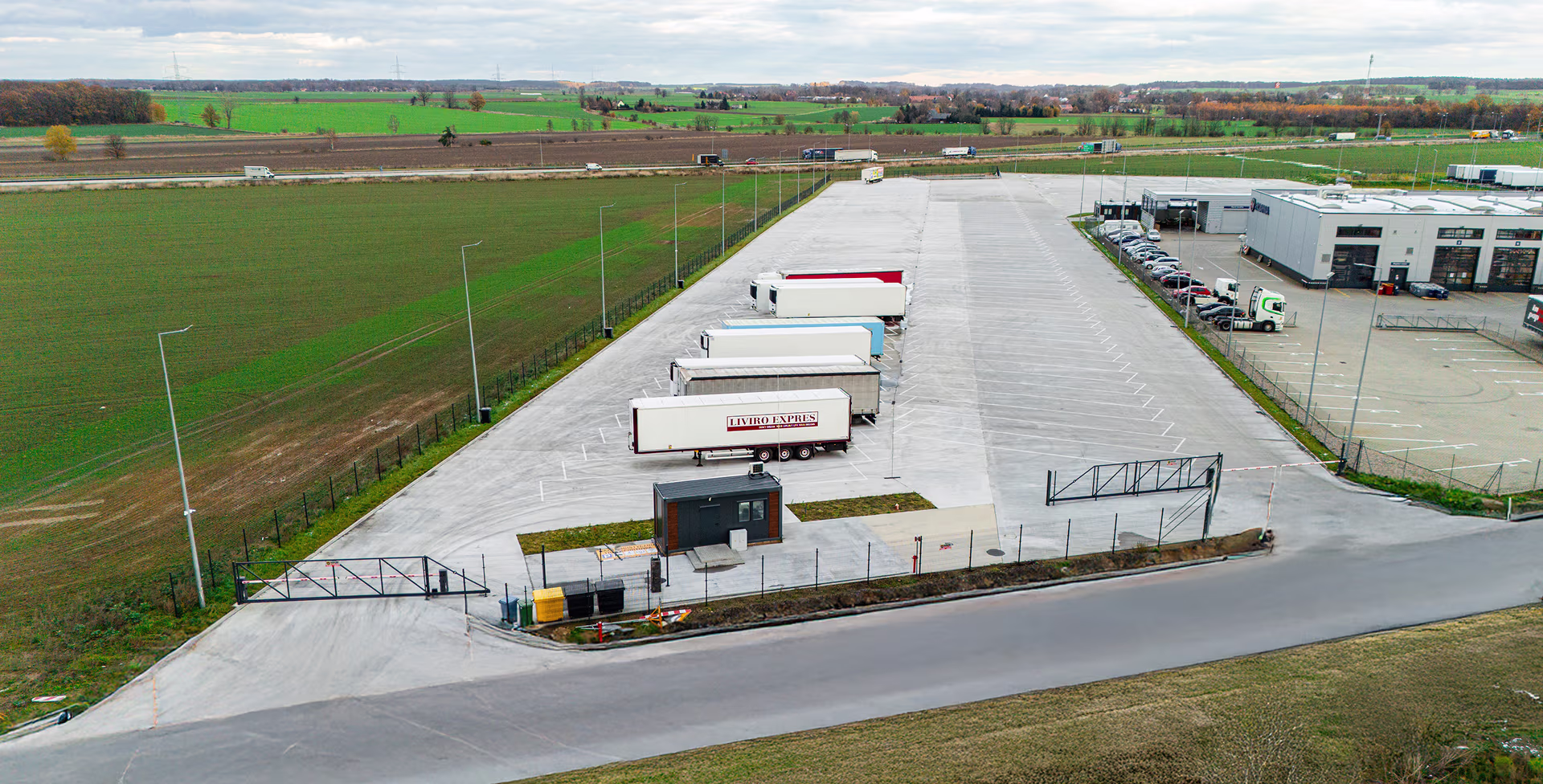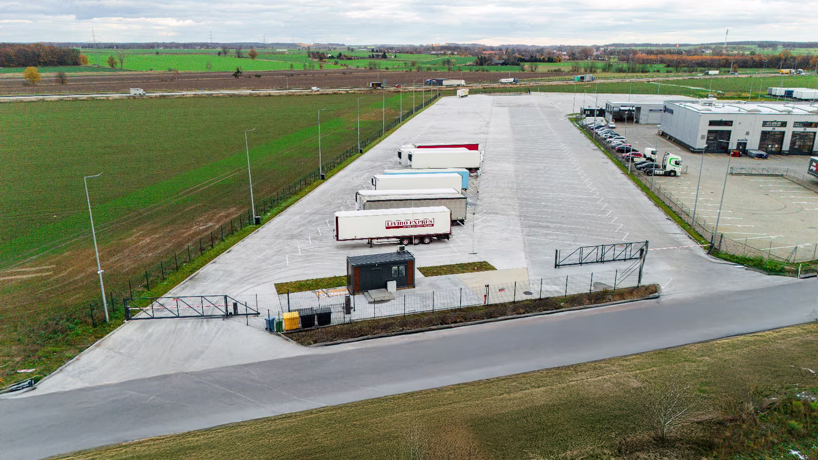 ✔ Oświetlony i utwardzony plac postojowy – idealny na każdą pogodę