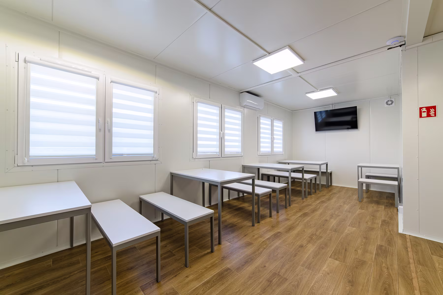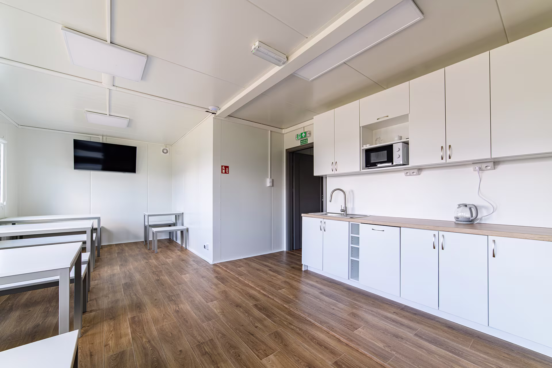 Tak, po skorzystaniu z prysznica można poczekać w jadalni wyposażonej ławy, stoły i TV oraz aneks kuchenny z kompletnym AGD.